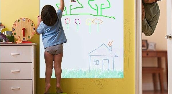 قومي بشراء لوحة كبيرة والصقيها على احد الحوائط بغرفة الطفل ، أعطي الطفل الوان كثيرة واتركي له بعض الوقت وسترى أسرتك فنان تشكيلي جديد، هذه الطريقة ستوفر عليك تنظيف الحوائط كل فترة ، إذ أنها ستوفر مكان بديل لطفلك ليرسم ويكتب فيه .