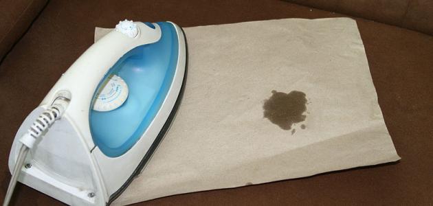 - تطهير البقعة باستعمال منظف الاقمشة، او قطعة اسفنج نظيفة، وهذا بعد ازالة اكبر اعداد ممكنة من الشمع.