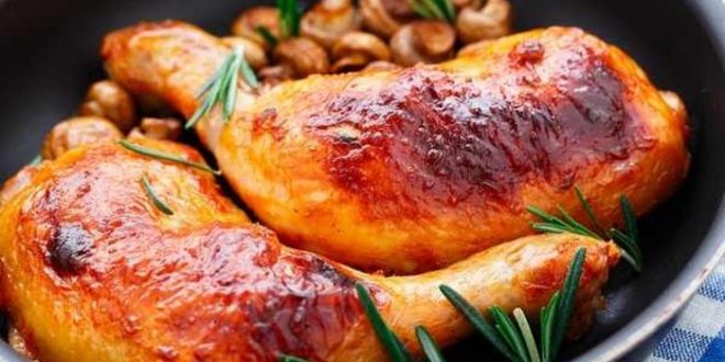 • اخرجي قطع الدجاج من الفرن وقدميها مع اوراق الريحان والسلطة والارز او البطاطس المشوية.