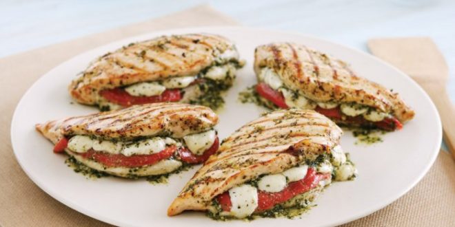 • قدمي صينية الدجاج المحشو بالموتزاريلا ساخنة
