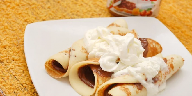 ضعي الكريب في صحن و قومي بحشوه يملعقة من النوتيلا