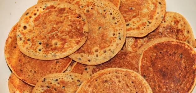 7-ناخذ مقدار ملعقة كبيرة من العجينة ونضعها بالمقلاة حتى يظهر فقاعات نقلبها للطرف الثاني ليصبح لونها مشقر
