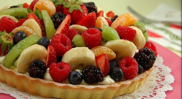9- اسكبي الكاسترد فوق التارت، ثم زينيها بالفواكه، وضعيها في الثلاجة حتى تيرد تماماً.