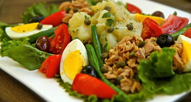 7-ضعي كل مكونات السلطة في وعاء وأضيفي عليها الزينة.وقدميها فوراً
