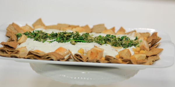 حضري خلطة من الرّوب والثوم المطحون والبقدونس والهردة والليمون المعصور. صفّي الخبز المقلي من الزيت وضعيه في قاع الطبق الذي ترغبين بتقديم الفتة فيه.