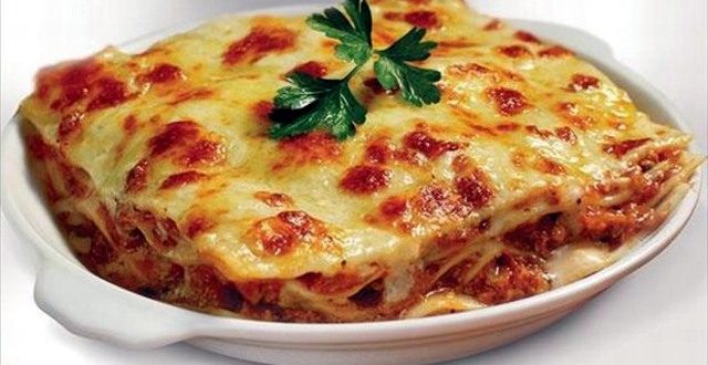 في صينية خبز توضع طبقة خفيفة من البشاميل عليها شرائح لازانيا ثم طبقة من حشوة اللحم وعليها كمية قليلة جداً من البشاميل، تعاد الكرة حتى تنتهي الكمية.