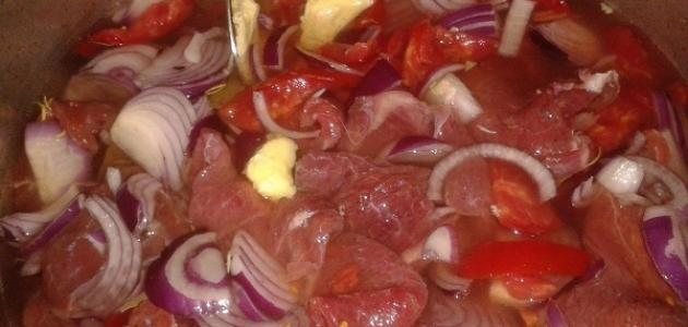 عمل اللحم بالبصل والطماطم