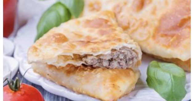 8. افردي الجزء الأكبر في صينية التارت، ثم افردي فوقها اللحم.