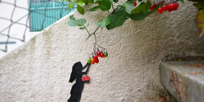 رسمة لآنسة تجمع الفلفل من هذه النبتة تضيف بعض المرح.