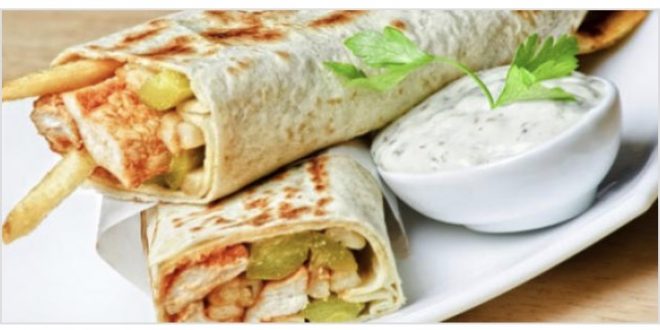 •توزيع الصلصة على قرص الكريب، ثمّ لفه على شكلٍ دائري.