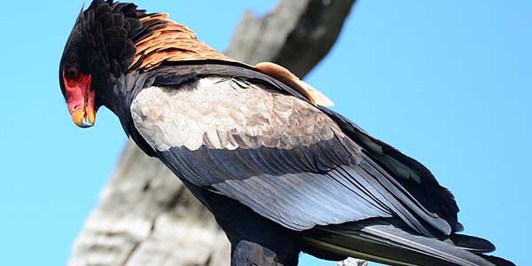 - نسر الديك الرومي: يتميز نسر الديك الرومي بقدرته على تمزيق فريسته ويصل طوله من 62سم إلى 81سم، بينما يبلغ وزنه 2.3 كيلو جرام ويصنف من الطيور كبيرة الحجم، يمتلك ريشاً أسود غامق ويشبه في شكله طائر الديك الرومي.