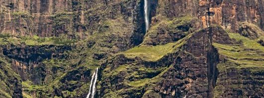 معلومات عن شلالات توجيلا شلالات توجيلا Tugela، هو مجمع من الشلالات الموسمية التي تقع في Drakensberg ( جبال التنين )، من حديقة رويال ناتال الوطنية في مقاطعة كوازولو ناتال، جمهورية جنوب أفريقيا، يعد هذا الشلال من أشهر الشلالات، باعتباره ثاني أطول شلال في العالم، وهناك بعض المصادر التي تقول أنه في الواقع أطول شلال في العالم، وليس شلال أنجل في فنزويلا، ومصدر نهر توجيلا هو هضبة مونت أوكس سورسيس، التي تمتد عدة كيلومترات إلى ما وراء هضبة المدرج التي يسقط منها الشلالات .