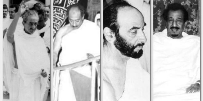 هذه الصورة تجمع الملك فيصل و الملك فهد بن عبدالعزيز و الملك عبدالله بن عبدالعزيز في الخلف خلال موسم الحج 1965
